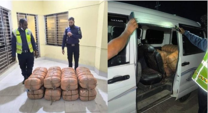 ব্রাহ্মণবাড়িয়া জেলার সরাইল খাঁটিহাতা হাইওয়ে থানা পুলিশ এক বিশেষ অভিযান চালিয়ে সোমবার ভোর রাত ৪টার দিকে ১০৮ কেজি গাঁজাসহ একটি মাইক্রোবাস জব্দ করেছে। ঢাকা-সিলেট মহাসড়কের বিশ্বরোড এলাকা থেকে এই বিপুল পরিমাণ মাদক উদ্ধার করা হয়।