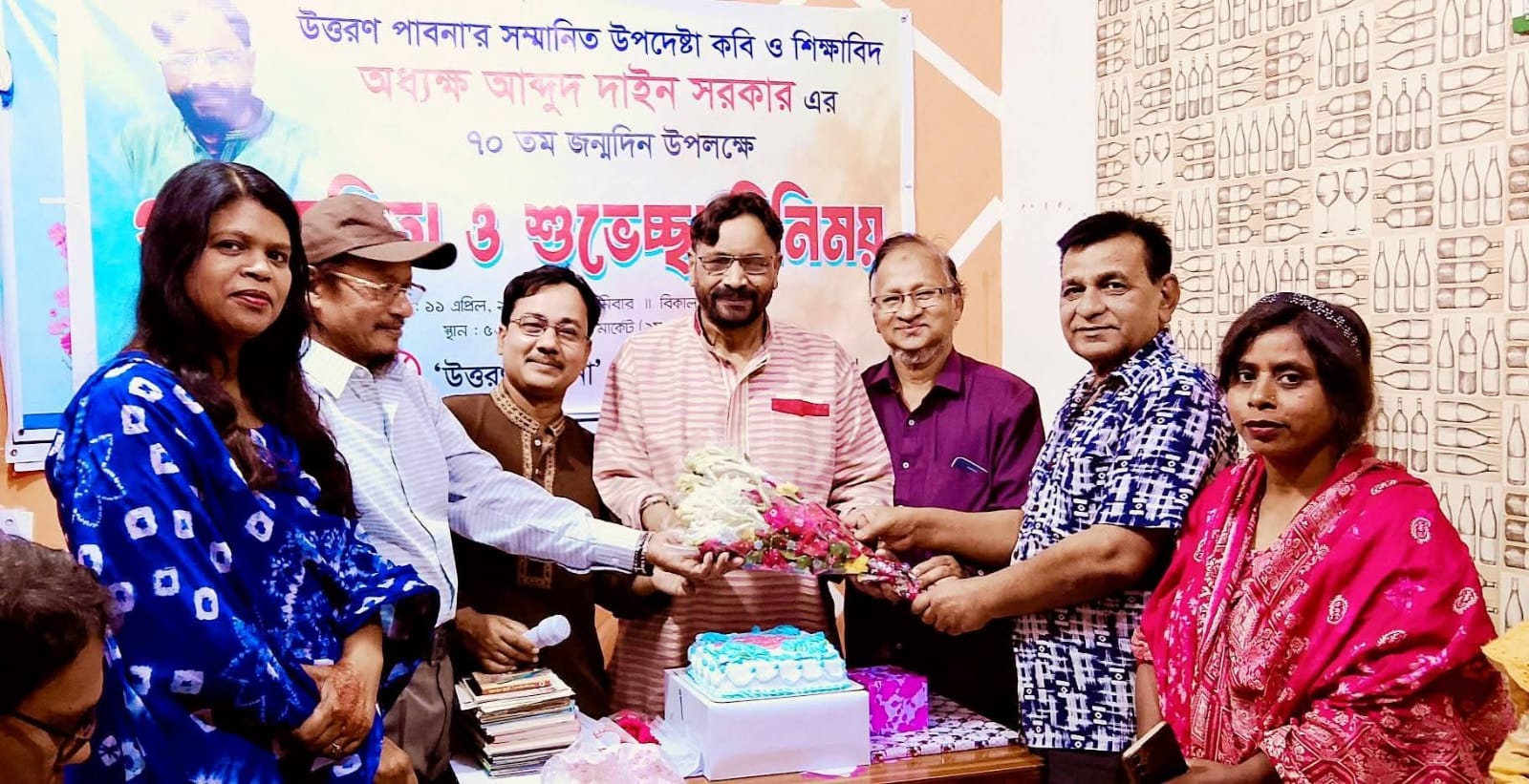 দেশের অন্যতম সাহিত্য, সাংস্কৃতিক ও সামাজিক সংগঠন উত্তরণ পাবনার আয়োজনে সংগঠনের উপদেষ্টা, কবি, সাংবাদিক, নাট্যাভিনেতা ও শিক্ষাবিদ প্রফেসর আব্দুদ দাইন সরকারের ৭০তম জন্মদিন উদযাপন করা হয়েছে। শনিবার (১১ এপ্রিল) সন্ধ্যায় শহরের ৫৬ নম্বর সমবায় মার্কেটের দ্বিতীয় তলায় উত্তরণ পাবনার কার্যালয়ে এ অনুষ্ঠান অনুষ্ঠিত হয়।
