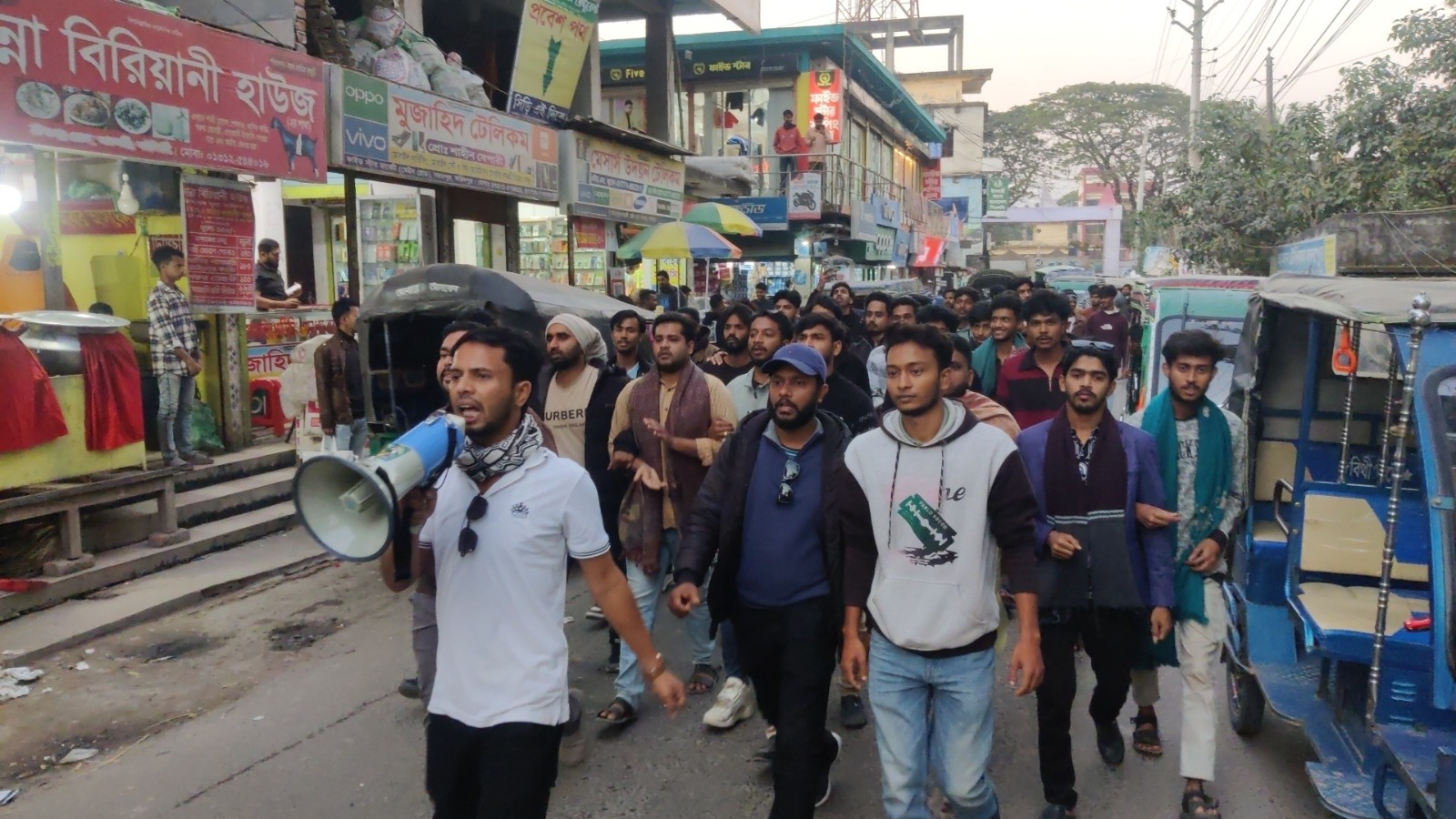 উপজেলা ছাত্রদল নেতা তুষার মাহমুদসহ অন্যান্য ছাত্রনেতৃবৃন্দ নেতৃত্ব দেন। মিছিল চলাকালে হামলাকারীদের দ্রুত গ্রেপ্তার ও দৃষ্টান্তমূলক শাস্তির দাবিতে প্রতিবাদী স্লোগান দেওয়া হয়।