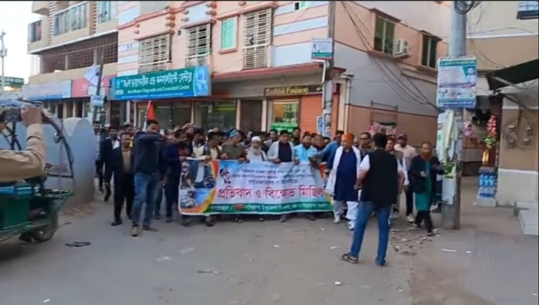 ওসমান হাদীর ওপর হামলার প্রতিবাদে নাসিরনগরে বিএনপির বিক্ষোভ মিছিল
