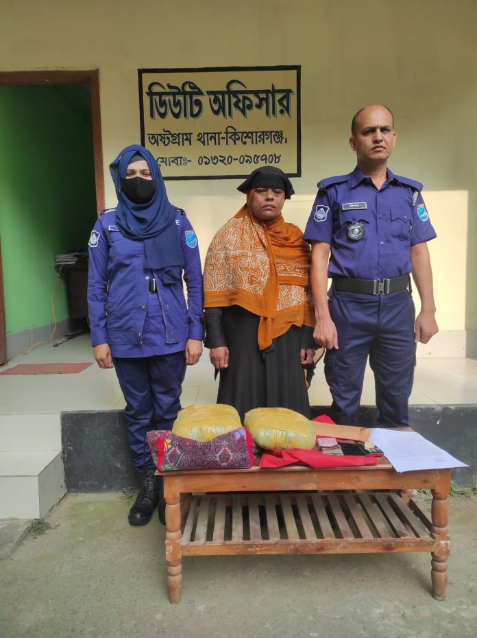 কিশোরগঞ্জে চার কেজি গাঁজা সহ নারী মাদক ব্যবসায়ী গ্রেফতার