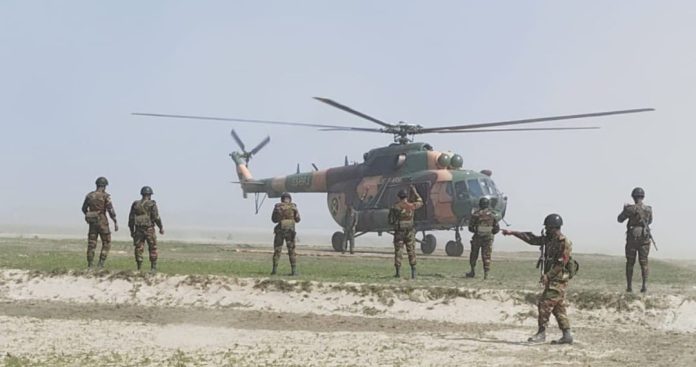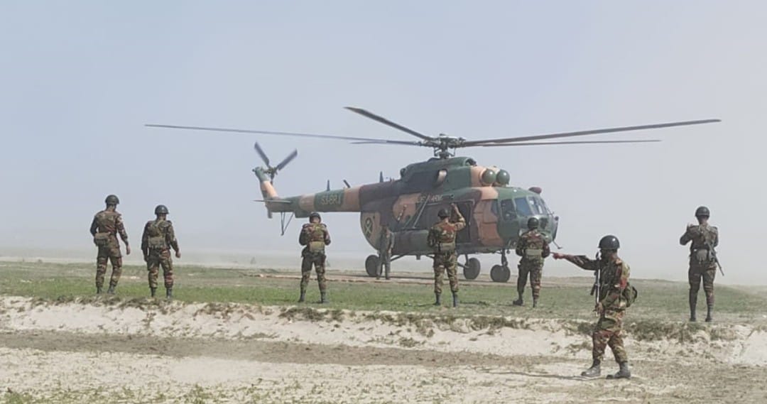কুড়িগ্রামের চিলমারীতে সেনাবাহিনীর হেলিকপ্টার মহড়া, চরাঞ্চলে ভোট নিরাপত্তা জোরদার