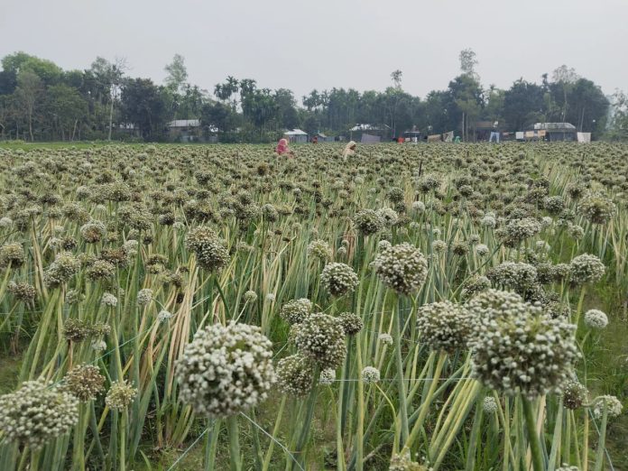এ অবস্থায় কুড়িগ্রাম জেলার রাজারহাট উপজেলায় পেঁয়াজের বীজ উৎপাদন এক নতুন আশার আলো দেখিয়েছে। প্রথমবারের মতো এই অঞ্চলে শুরু হওয়া পেঁয়াজ বীজ উৎপাদন স্থানীয় কৃষি অর্থনীতিতে খুলে দিচ্ছে সম্ভাবনার নতুন এক দুয়ার।