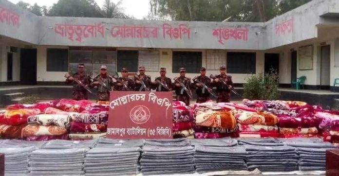 কুড়িগ্রামের রৌমারী সীমান্তে ৩৮ লাখ টাকার ভারতীয় কাপড় জব্দ