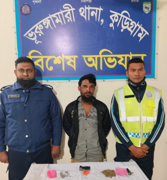 কুড়িগ্রাম জেলার ভুরুঙ্গামারী উপজেলায় মাদকবিরোধী বিশেষ অভিযান চালিয়ে নয়ন মিয়া (৩১) নামে এক মাদক কারবারিকে গ্রেফতার করেছে থানা পুলিশ।