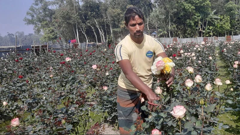 কুড়িগ্রাম জেলার উলিপুর উপজেলার ধরনীবাড়ী সরকারপাড়া গ্রামের মোঃ সায়েদুল ইসলাম প্রমাণ করেছেন, মাটি ও ফুলের প্রতি অকৃত্রিম ভালোবাসা আর পরিশ্রম থাকলে ভাগ্য বদলানো সম্ভব। মাত্র ১০-২০ শতক জমি থেকে শুরু হওয়া সেই যাত্রা আজ এক একরের বিশাল গোলাপ বাগানে রূপ নিয়েছে; যেখানে ফুটে থাকা লাল, হলুদ আর সাদা চায়না গোলাপগুলো যেন সায়েদুলের দীর্ঘদিনের হাড়ভাঙা খাটুনির এক একটি রঙিন হাসির প্রতিচ্ছবি।