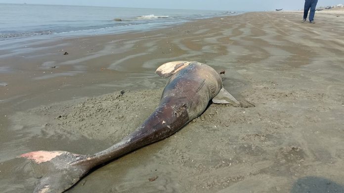 প্রত্যক্ষদর্শীরা জানান, ডলফিনটির শরীরের বিভিন্ন অংশের চামড়া উঠে গিয়েছিল এবং তীব্র দুর্গন্ধ ছড়াচ্ছিল। ধারণা করা হচ্ছে, এক দিন আগেই ডলফিনটি মারা গেছে।
