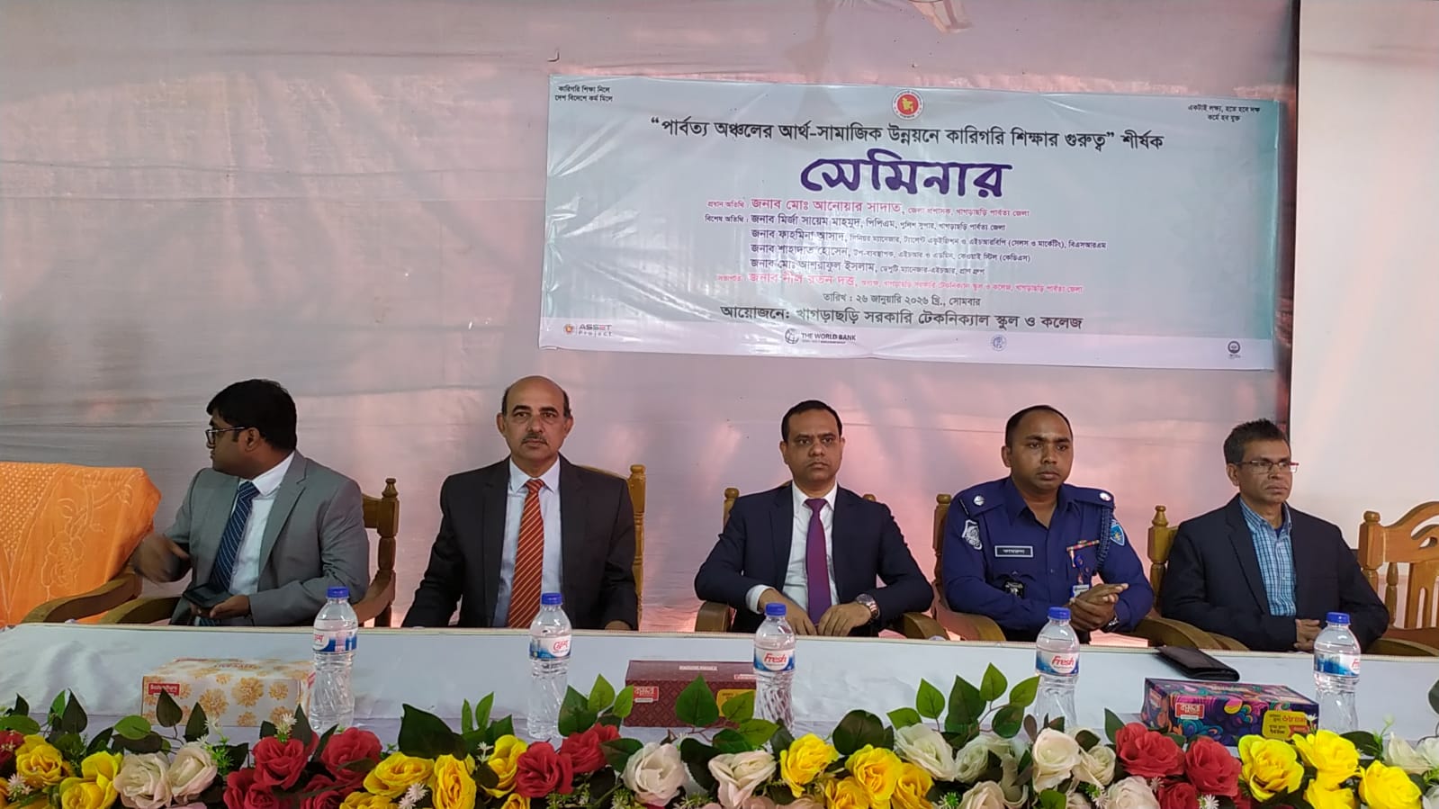 খাগড়াছড়ি সরকারি টেকনিক্যাল স্কুল অ্যান্ড কলেজের অধ্যক্ষ নীল রতন দত্তের সভাপতিত্বে সেমিনারে প্রধান অতিথি হিসেবে বক্তব্য দেন খাগড়াছড়ি জেলা প্রশাসক মোঃ আনোয়ার সাদাত।