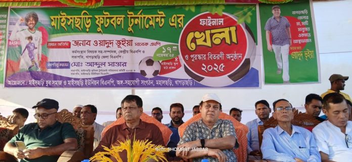 খাগড়াছড়িতে জমকালো আয়োজনের মধ্য দিয়ে শেষ হয়েছে মাইসছড়ি ফুটবল টুর্নামেন্ট। আজ সোমবার বিকেলে মাইসছড়ি স্কুল মাঠে টুর্নামেন্টের ফাইনাল খেলা ও পুরস্কার বিতরণী অনুষ্ঠানের আয়োজন করা হয়।