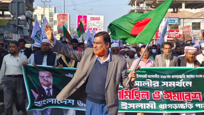 এতে নির্বাচনী আচরণ বিধি ভঙ্গ করলে সকল প্রার্থীর বিরুদ্ধে ব্যবস্থা গ্রহণে প্রশাসনের দৃষ্টি আকর্ষণ করে নিরপেক্ষা ভূমিকা পালনের আহ্বান জানান তিনি। এর আগে বিপুল জন সমাগমের মধ্য দিয়ে খাগড়াছড়ি সরকারি কলেজ মাঠ থেকে নির্বাচনী গণমিছিল শুরু করে খাগড়াছড়ির শাপলা চত্বর,আদালত সড়ক,মধুপুর ঘুরে মুক্ত মঞ্চে এসে সমাবেশ করে।