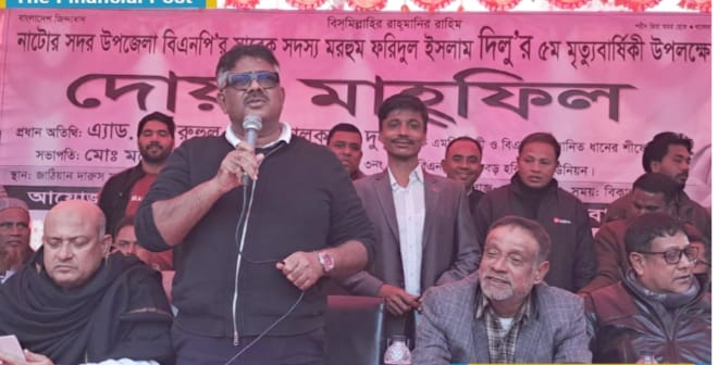 বৃহস্পতিবার বিকেলে নাটোর সদর উপজেলার ৫ নম্বর বড় হরিশপুর ইউনিয়নের জাঠিয়ান দারুস সালাম হাফিজিয়া কওমি মাদ্রাসা প্রাঙ্গণে নাটোর সদর উপজেলা বিএনপির সাবেক সদস্য মরহুম ফরিদুল ইসলাম দিলুর পঞ্চম মৃত্যুবার্ষিকী উপলক্ষে আয়োজিত দোয়া মাহফিলে প্রধান অতিথির বক্তব্যে তিনি এসব কথা বলেন।