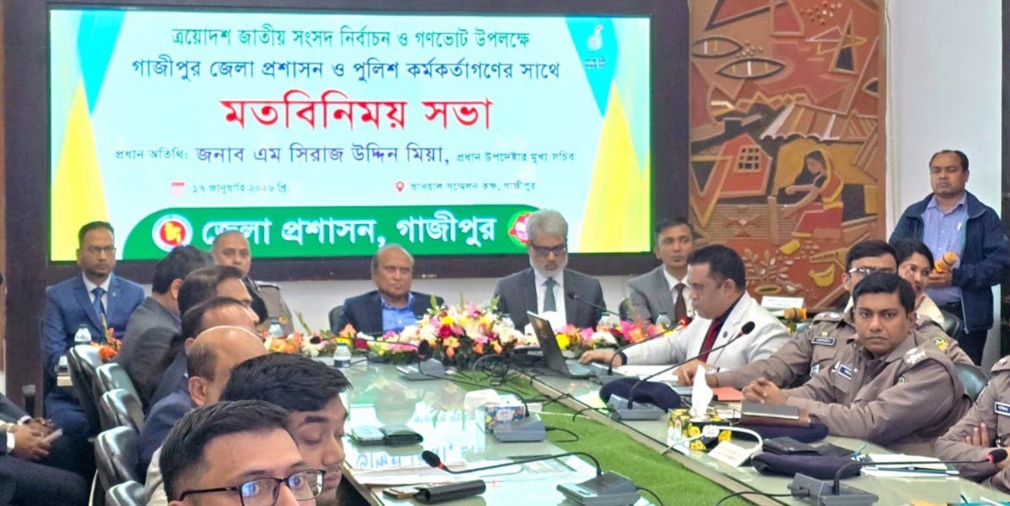 গাজীপুরে ত্রয়োদশ জাতীয় সংসদ নির্বাচন ও গণভোটের সার্বিক প্রস্তুতি নিয়ে জেলা প্রশাসন ও পুলিশ কর্মকর্তাদের সঙ্গে এক গুরুত্বপূর্ণ মতবিনিময় সভা অনুষ্ঠিত হয়েছে।