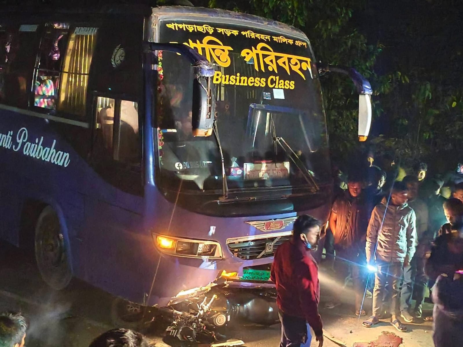স্থানীয় সূত্রে জানা যায়, চট্টগ্রাম থেকে ছেড়ে আসা খাগড়াছড়িগামী শান্তি পরিবহন বাস (রেজি: ঢাকা মেট্রো-ব-১৪-৫৯৮৩) বিপরীত দিক থেকে আসা একটি মোটরসাইকেলের সঙ্গে মুখোমুখি সংঘর্ষে জড়ায়। এতে ঘটনাস্থলেই মোটরসাইকেল চালক কুবেনজয় ত্রিপুরা (২৮) নিহত হন।