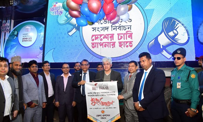 এরই ধারাবাহিকতায় আজ চট্টগ্রাম জেলা স্টেডিয়াম চত্বরে ভোটের গাড়ি সুপার ক্যারাভান উদ্বোধন করা হয়। অনুষ্ঠানে স্থানীয় সরকার, পল্লী উন্নয়ন ও সমবায়, গৃহায়ন ও গণপূর্ত এবং শিল্প উপদেষ্টা আদিলুর রহমান খান প্রধান অতিথি হিসেবে উপস্থিত থেকে ক্যারাভানের কার্যক্রমের উদ্বোধন করেন।