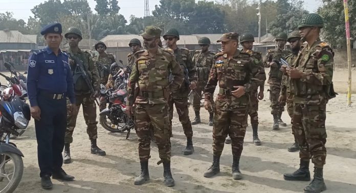 চরভদ্রাসনে নির্বাচন পরবর্তী আইনশৃঙ্খলা রক্ষায় আর্মি ক্যাম্পের যৌথ টহল / ছবি - এই বাংলা