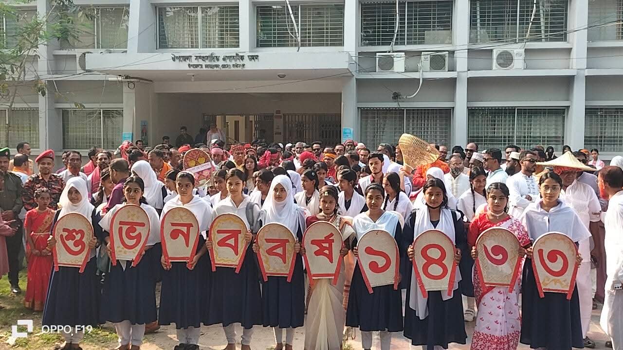 সকালে সাড়ে ৮টায় উপজেলা পরিষদ চত্বর থেকে একটি বর্ণাঢ্য বৈশাখী শোভাযাত্রা বের করা হয়। শোভাযাত্রাটি উপজেলার প্রধান প্রধান সড়ক প্রদক্ষিণ শেষে পুনরায় প্রশাসনিক ভবনের সামনে এসে শেষ হয়। এতে অংশগ্রহণকারীদের হাতে ছিল রঙিন ফুল, নববর্ষের শুভেচ্ছা সম্বলিত প্ল্যাকার্ড এবং গ্রামীণ লোকজ সংস্কৃতির বিভিন্ন উপকরণ। বৈশাখী সাজে সজ্জিত হয়ে উপজেলা প্রশাসনের কর্মকর্তা-কর্মচারীরা আনন্দঘন পরিবেশে শোভাযাত্রায় অংশ নেন।
