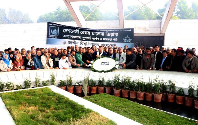 জাতীয় বিশ্ববিদ্যালয়ের পক্ষ থেকে বেগম খালেদা জিয়ার সমাধিতে শ্রদ্ধা