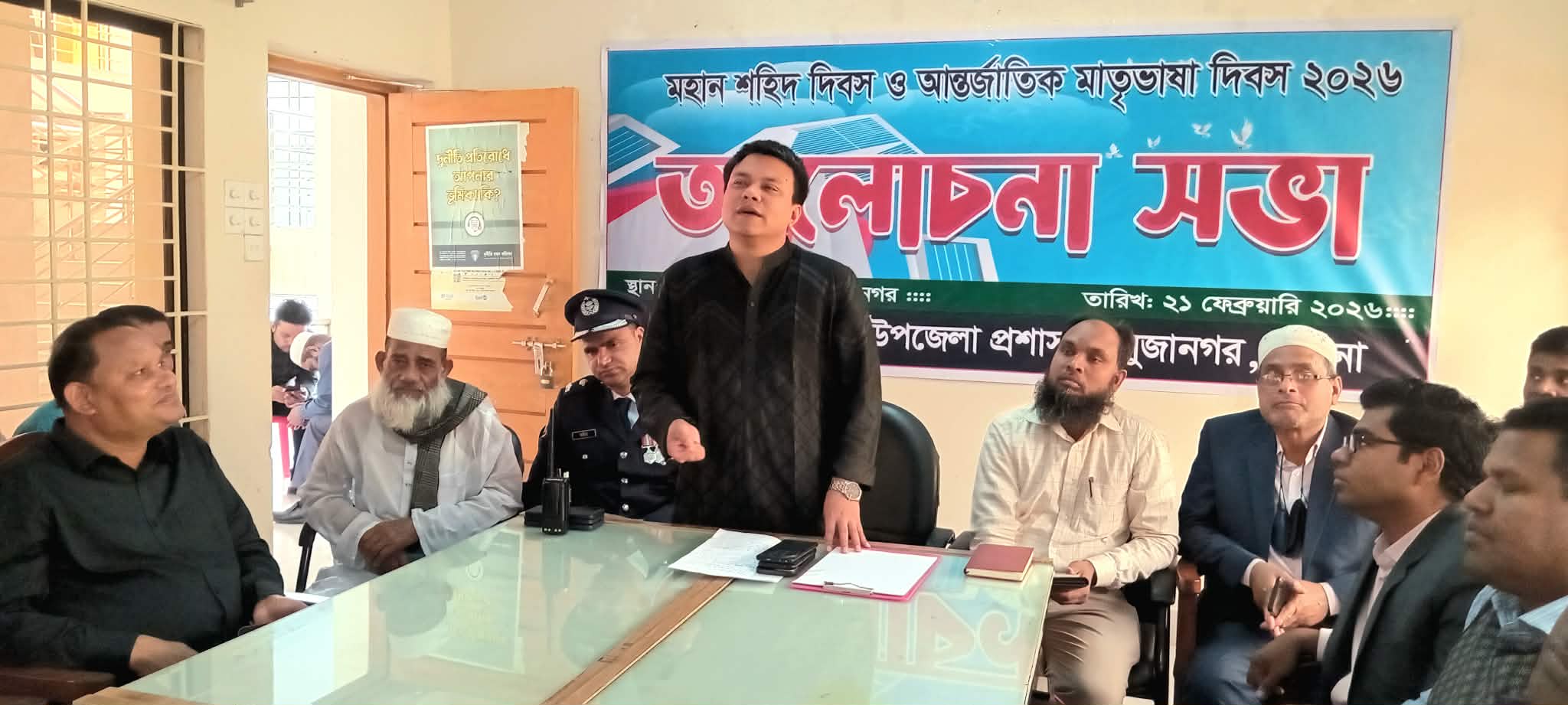 এরপর উপজেলা হল রুমে আলোচনা সভা অনুষ্ঠিত হয়। সভার সভাপতিত্ব করেন উপজেলা নির্বাহী কর্মকর্তা মীর রাশেদুজ্জামান রাশেদ, এবং সঞ্চালনা করেন একাডেমিক সুপারভাইজার মনোয়ার হোসেন। এতে বক্তব্য রাখেন—উপজেলা প্রাণিসম্পদ কর্মকর্তা ডাঃ আলমগীর হোসেন, কৃষি কর্মকর্তা আসাদুজ্জামান, উপজেলা বিএনপির সাবেক সভাপতি আজম আলী বিশ্বাস, সাবেক মেয়র ও পৌর বিএনপির সভাপতি কামাল হোসেন বিশ্বাস, অধ্যক্ষ নাদের হোসেন, জামায়াতে ইসলামী নেতা ওয়ালীউল্লাহ বিশ্বাস, সাংবাদিক তৌফিক হাসান, রিপন মাহমুদ প্রমুখ।