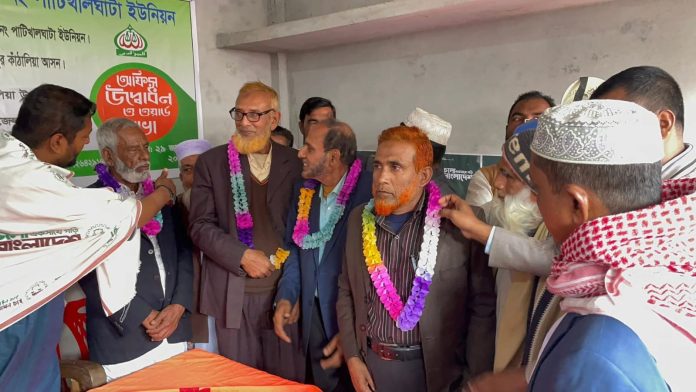 উপজেলা জামায়াতের নেতারা নতুন যোগদানকারীদের ফুলের মালা দিয়ে বরণ করেন।