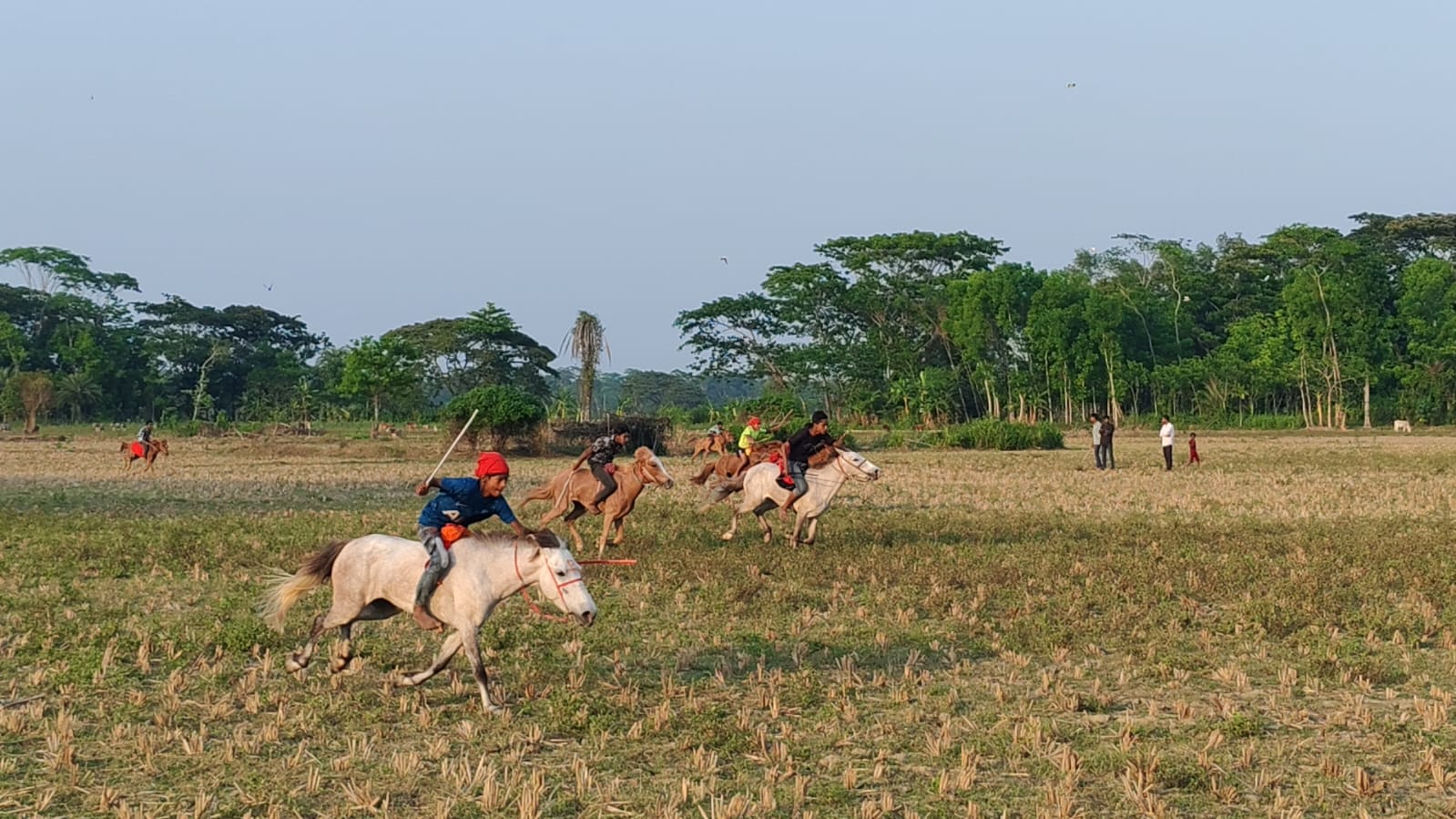 গ্রাম বাংলার ঐতিহ্যবাহী ঘোড়দৌঁড় উপলক্ষে মাঠের চারপাশে আয়োজন করা হয় মেলার।