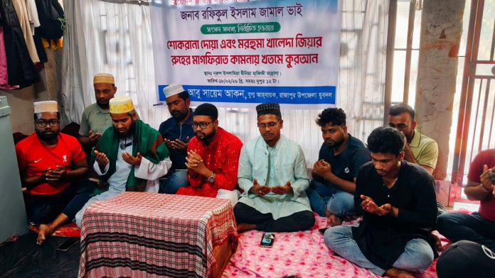 বুধবার দুপুরে নূরুল ইসলামিয়া দ্বীনিয়া হাফিজী মাদ্রাসা প্রাঙ্গণে এ ধর্মীয় অনুষ্ঠানের আয়োজন করা হয়। এতে স্থানীয় ধর্মপ্রাণ মুসল্লি, রাজনৈতিক নেতাকর্মী ও এলাকাবাসী উপস্থিত ছিলেন।