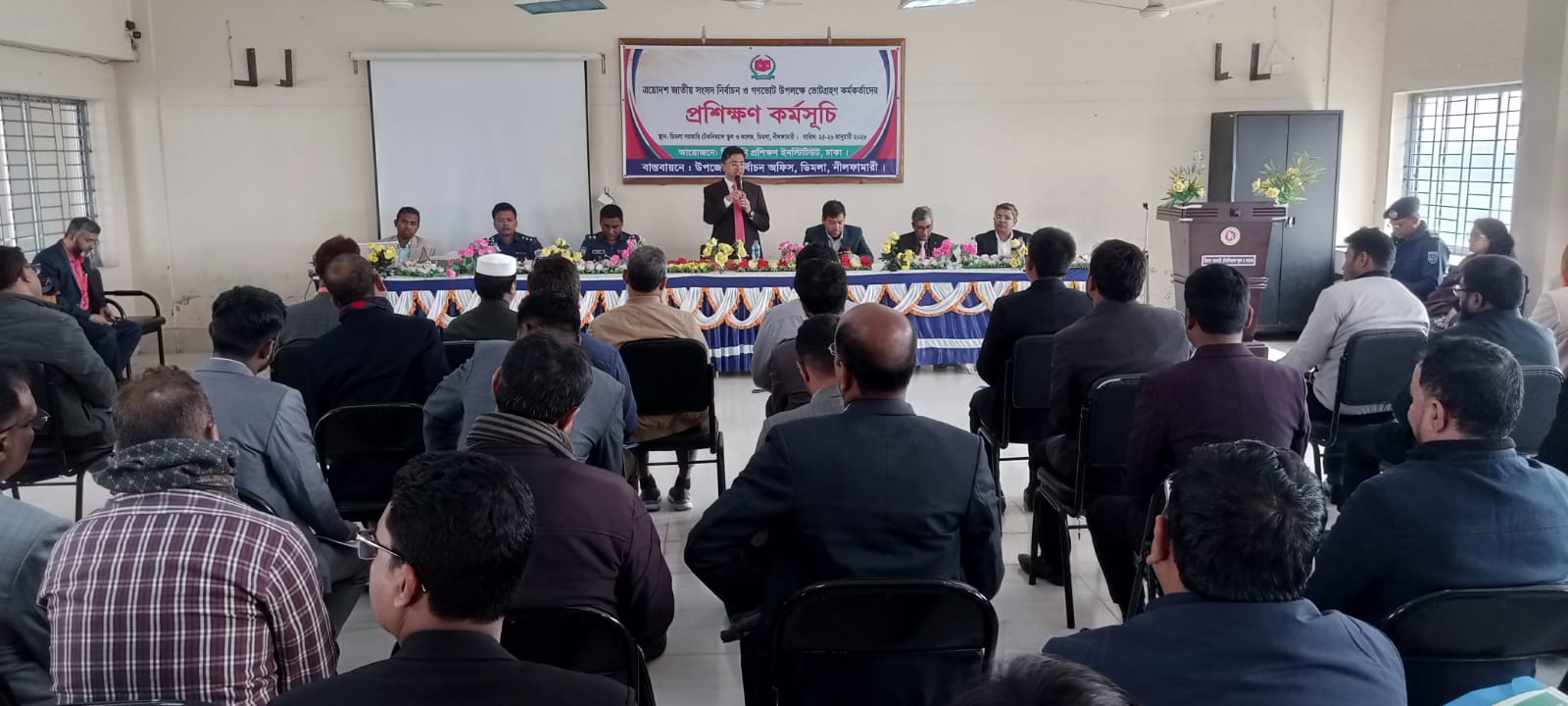 নীলফামারীর ডিমলায় আসন্ন ত্রয়োদশ জাতীয় সংসদ নির্বাচন ও গণভোট (১২ ফেব্রুয়ারি ২০২৬) উপলক্ষে ভোটগ্রহণে দায়িত্বপ্রাপ্ত প্রিজাইডিং, সহকারী প্রিজাইডিং ও পোলিং অফিসারদের দুই দিনব্যাপী প্রশিক্ষণ কর্মশালা ও নির্বাচন বিষয়ক মতবিনিময় সভা অনুষ্ঠিত হয়েছে।