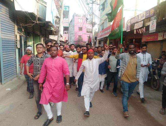 জুমার নামাজের পর উপজেলার বিভিন্ন ইউনিয়ন থেকে ছাত্রদলের নেতাকর্মীরা মিছিল নিয়ে তাড়াশ উপজেলা পাবলিক লাইব্রেরি চত্বরে এসে সমবেত হন। পরে উপজেলা ছাত্রদলের আহ্বায়ক জাহিদ ফকির ও সদস্য সচিব খন্দকার শাহাদত হোসেনের নেতৃত্বে ধানের শীষের পক্ষে একটি বিশাল মিছিল বের করা হয়। মিছিলটি পৌর শহরের প্রধান প্রধান সড়ক প্রদক্ষিণ শেষে পুনরায় উপজেলা পাবলিক লাইব্রেরি চত্বরে গিয়ে শেষ হয়।