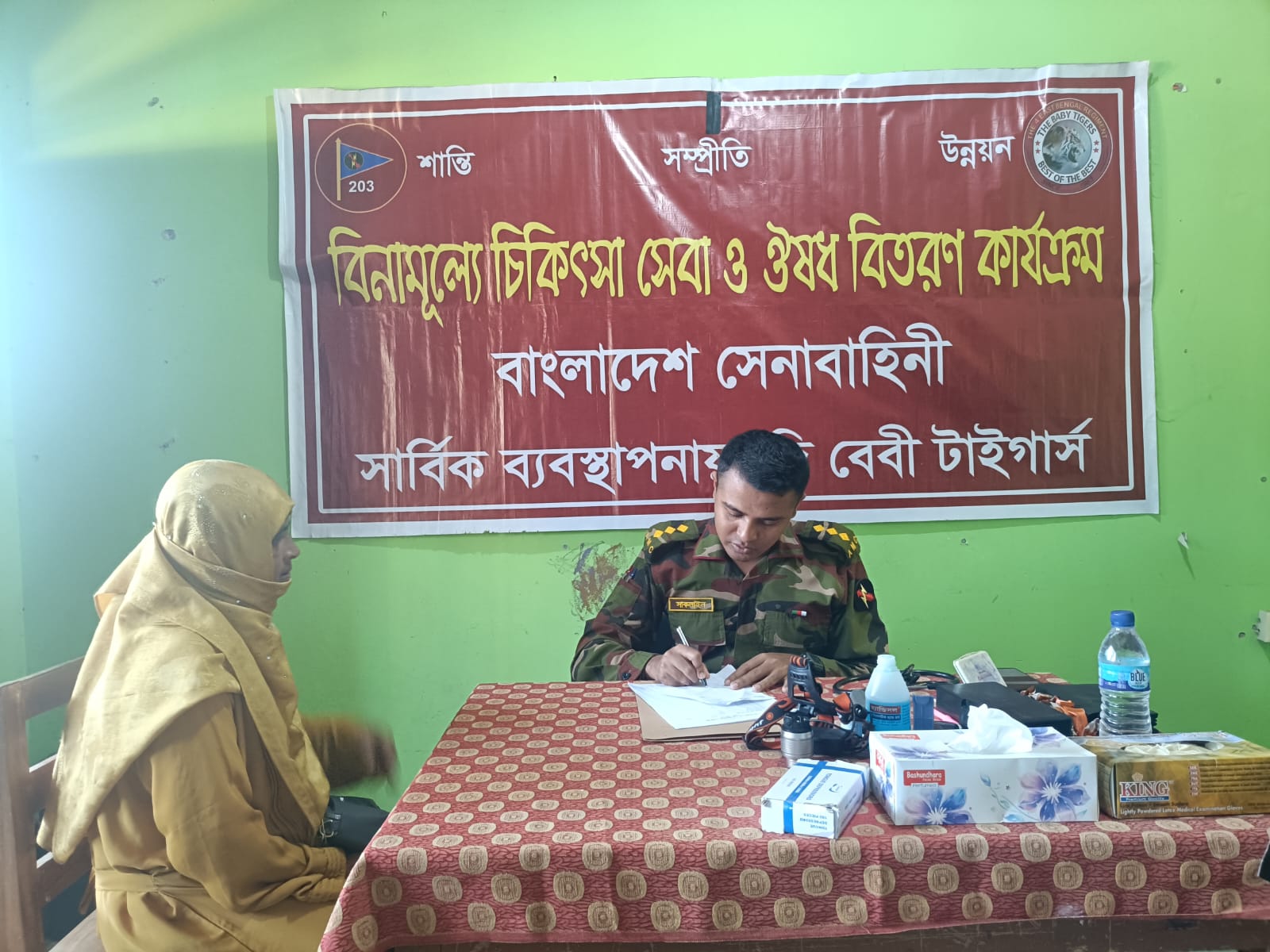 ক্যাম্পে দীঘিনালা জোনের আরএমও ক্যাপ্টেন মোঃ শাইখুদ্দিন সাকলাইন চিকিৎসাসেবা প্রদান করেন। এই কার্যক্রমে মোট ৫৩২ জন স্থানীয় বাসিন্দা বিনামূল্যে চিকিৎসা ও প্রয়োজনীয় ওষুধ গ্রহণ করেন। এর মধ্যে উপজাতি জনগোষ্ঠীর সদস্য ছিলেন ৫৭ জন এবং বাঙালি জনগণ ছিলেন ৪৭৫ জন।