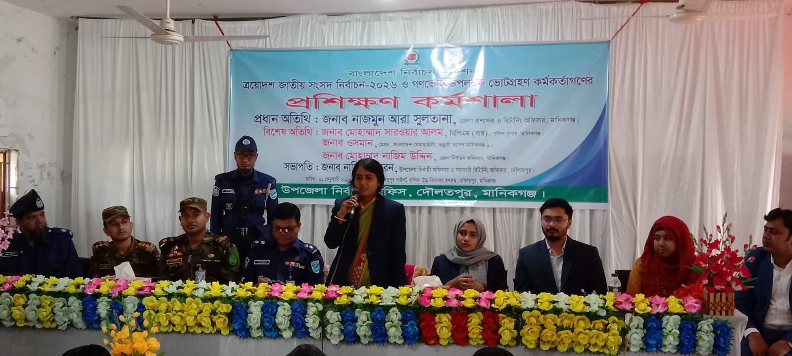 আসন্ন ত্রয়োদশ জাতীয় সংসদ নির্বাচন ও গণভোট সুষ্ঠু ও শান্তিপূর্ণভাবে সম্পন্ন করার লক্ষ্যে মানিকগঞ্জের দৌলতপুর উপজেলায় ভোটগ্রহণ কর্মকর্তাদের জন্য দিনব্যাপী প্রশিক্ষণ কর্মশালা অনুষ্ঠিত হয়েছে।