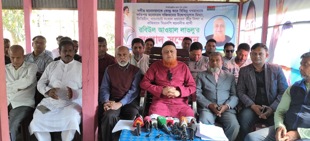 টাঙ্গাইল-৬ (নাগরপুর–দেলদুয়ার) আসনে বাংলাদেশ জাতীয়তাবাদী দল বিএনপি মনোনীত জাতীয় সংসদ সদস্য পদপ্রার্থী রবিউল আওয়াল লাভলুর বিরুদ্ধে বিভিন্ন গণমাধ্যমে প্রচারিত ‘উদ্দেশ্যমূলক ও ভিত্তিহীন’ সংবাদ প্রতিবাদের জন্য সংবাদ সম্মেলন অনুষ্ঠিত হয়েছে। বৃহস্পতিবার (২৭ নভেম্বর) দুপুরে তিনি নিজ বাসভবনে এ সংবাদ সম্মেলনের আয়োজন করেন।