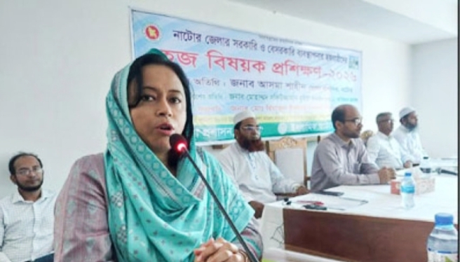 উদ্বোধনী পর্ব শেষে প্রশিক্ষণ সেশনে রিসোর্স পার্সন হিসেবে ইমিগ্রেশন, স্বাস্থ্যবিধি এবং হজ্জের বিধিবিধান সম্পর্কে প্রশিক্ষণ প্রদান করেন নাটোরের অতিরিক্ত জেলা