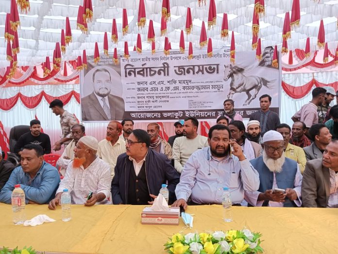 আসন্ন ত্রয়োদশ জাতীয় সংসদ নির্বাচনকে সামনে রেখে ব্রাহ্মণবাড়িয়ার নাসিরনগর উপজেলার ভলাকুট ইউনিয়নের সর্বস্তরের জনগণের উদ্যোগে এক বড় নির্বাচনী জনসভা অনুষ্ঠিত হয়েছে। বৃহস্পতিবার (২৯ জানুয়ারি) বিকেলে ভলাকুট ইউনিয়নের পূর্ব বাজার টাওয়ারসংলগ্ন বালুর মাঠে এই জনসভার আয়োজন করা হয়।