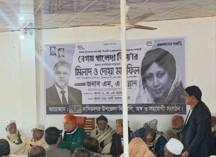 নাসিরনগরে খালেদা জিয়ার রুহের মাগফিরাত কামনায় দোয়া মাহফিল