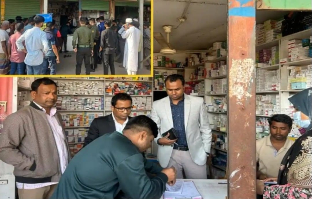 ফিজিশিয়ান স্যাম্পল বিক্রির অভিযোগে সদরের কলেজ মোড় হাসপাতাল মোড় এলাকার কয়েকটি ফার্মেসি জরিমানা করা হয় / ছবি - এই বাংলা