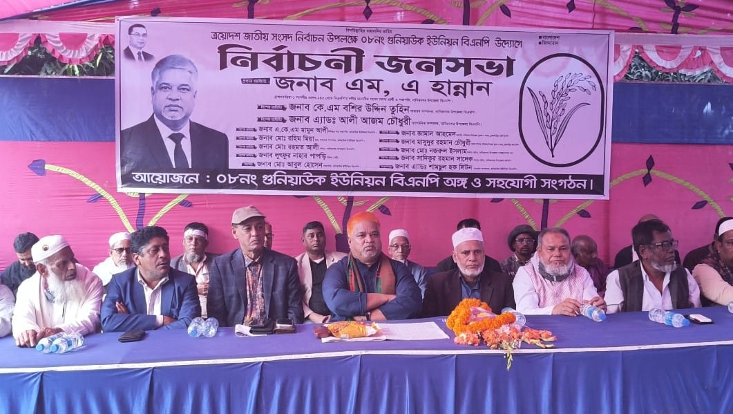 ত্রয়োদশ জাতীয় সংসদ নির্বাচনকে সামনে রেখে ব্রাহ্মণবাড়িয়া জেলার নাসিরনগর উপজেলার গুনিয়াউক ইউনিয়নে শনিবার (২৪ জানুয়ারি) বিএনপি ও অঙ্গ-সহযোগী সংগঠনের উদ্যোগে বিশাল নির্বাচনী জনসভা অনুষ্ঠিত হয়েছে। গুনিয়াউক ইউনিয়নের বাজার মাঠে এ জনসভায় স্থানীয় নেতাকর্মী এবং সাধারণ মানুষ ব্যাপক উপস্থিতি ছিলেন।