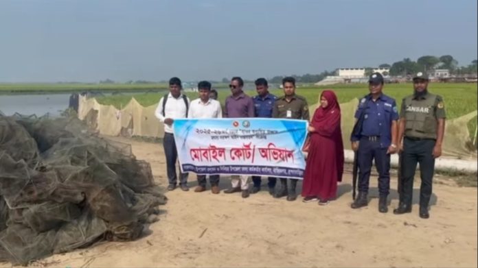 নাসিরনগরে মোবাইল কোর্টের অভিযান ১০ লক্ষ টাকার অবৈধ জাল পুড়িয়ে ধ্বংস