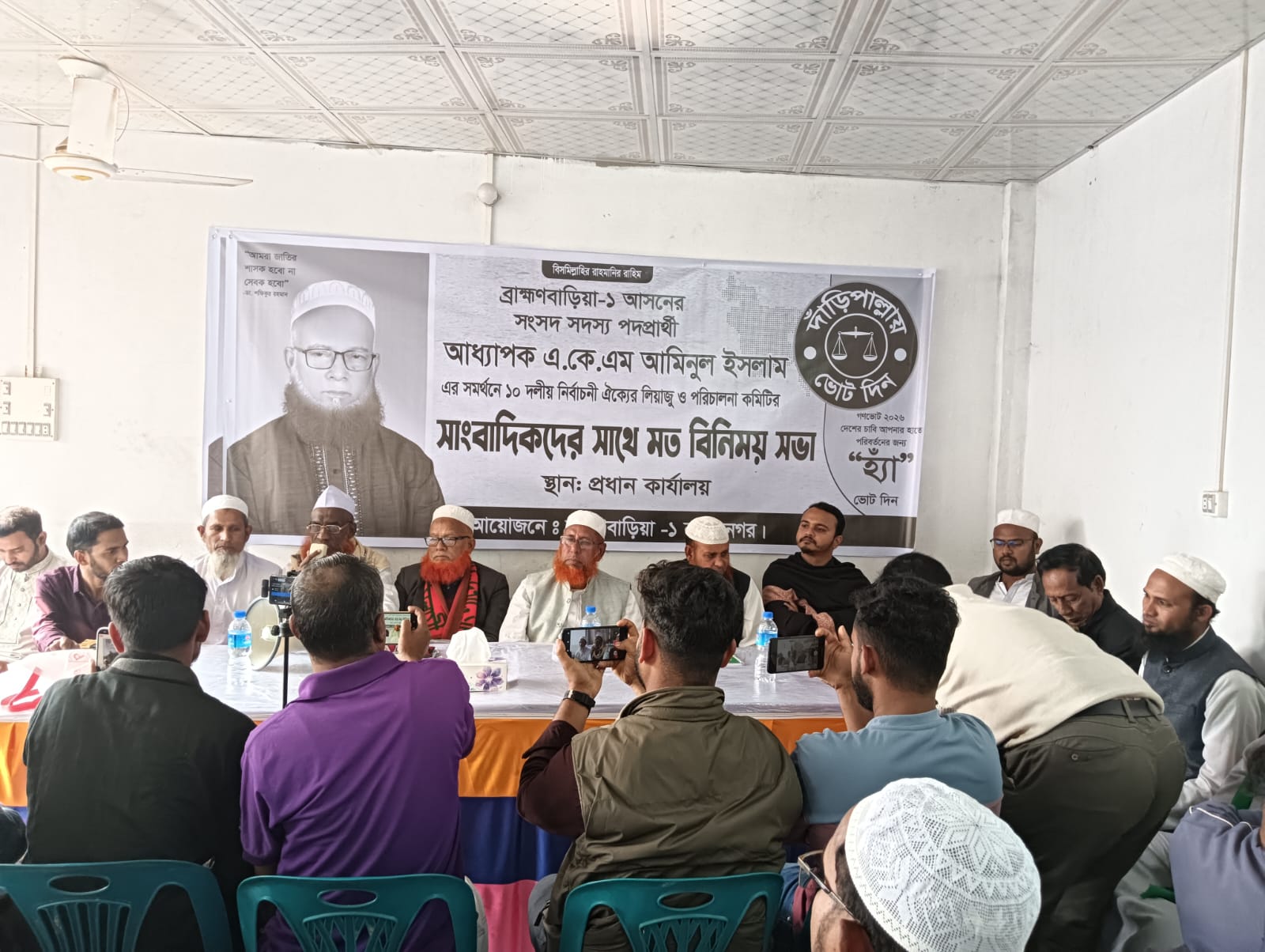 ব্রাহ্মণবাড়ীয়া জেলার হাওরবেষ্টিত নাসিরনগর উপজেলায় ১০–দলীয় জোটের সমর্থিত জামায়াতে ইসলামীর সংসদ সদস্য পদপ্রার্থী অধ্যাপক এ কে এম আমিনুল ইসলাম স্থানীয় সাংবাদিকদের সঙ্গে মতবিনিময় সভা অনুষ্ঠিত করেছেন।