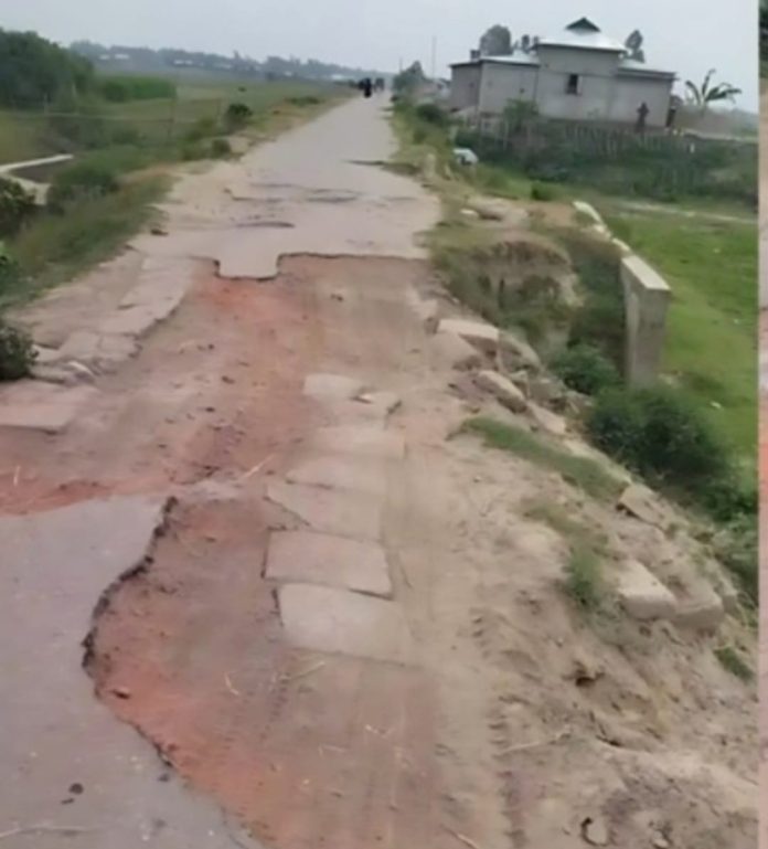 স্থানীয় বাসিন্দারা জানান, দুই বছর আগে ঠিকাদার প্রতিষ্ঠান সড়কটি পাকা করলেও অল্প সময়ের মধ্যেই এর পিচ–কার্পেটিং উঠে গিয়ে জায়গায় জায়গায় গর্ত তৈরি হয়েছে। বর্তমানে সড়কের এমন নাজুক অবস্থা যে এটি পাকা সড়ক না কাঁচা সড়ক—তা বোঝা কঠিন।