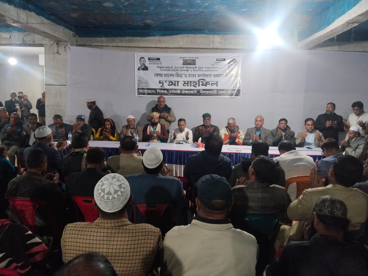 বাংলাদেশ শিক্ষক কর্মচারী ঐক্য জোট নীলফামারী জেলা শাখার উদ্যোগে বেগম খালেদা জিয়ার রুহের মাগফিরাত কামনায় দোয়া মাহফিল অনুষ্ঠিত হয়েছে।