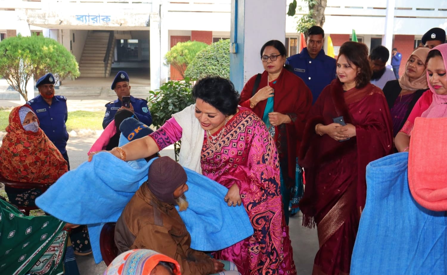 নীলফামারীতে শীতার্ত মানুষের মাঝে শীতবস্ত্র বিতরণ করেছেন বাংলাদেশ পুলিশ নারী কল্যাণ সমিতি (পুনাক) কেন্দ্রীয় সভানেত্রী আফরোজা হেলেন।