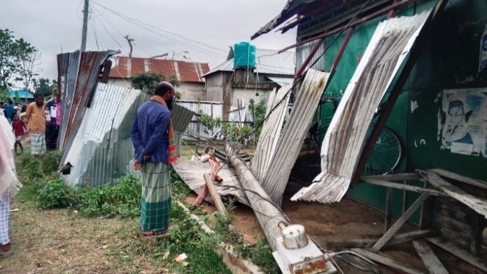 বিদ্যুতের খুঁটি ভেঙে ও তার ছিঁড়ে বিস্তীর্ণ এলাকা বিদ্যুৎহীন হয়ে পড়েছে।