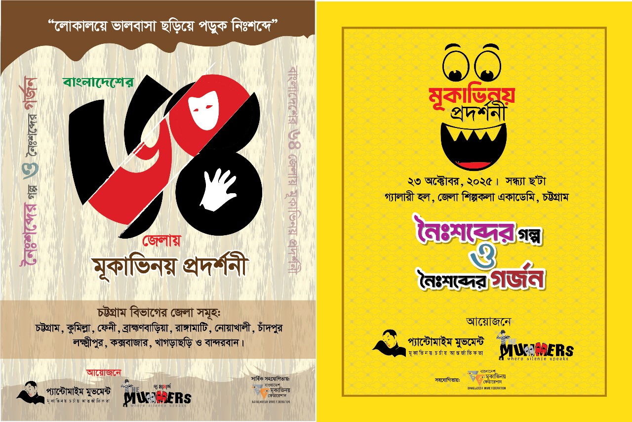 প্যান্টোমাইম মুভমেন্ট ও দ্য মামার্স-এর যৌথ আয়োজনে বাংলাদেশের ৬৪ জেলায় মূকাভিনয় প্রদর্শনীর মহাত্ম্য নিয়ে যাত্রা শুরু করতে যাচ্ছে ‘নৈঃশব্দ্যের গল্প ও নৈঃশব্দ্যের গর্জন’