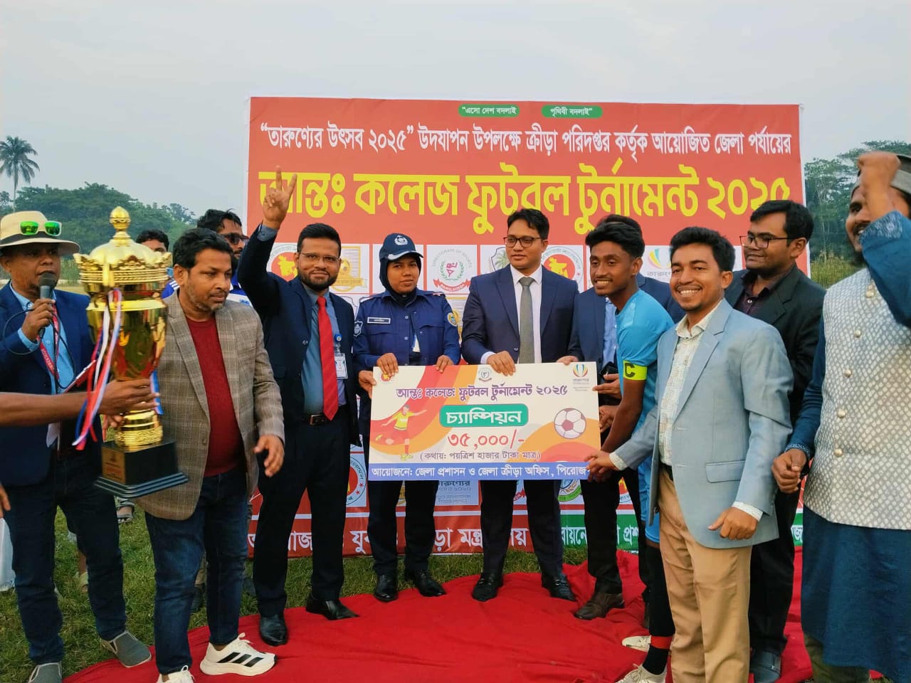 পিরোজপুরে আন্তঃ কলেজ ফুটবল টুর্নামেন্ট ২০২৫ এর চ্যাম্পিয়ন সোহরাওয়ার্দী কলেজ / ছবি - এই বাংলা