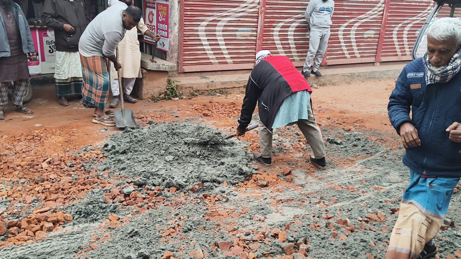 স্থানীয়রা জানান, দীর্ঘদিন ধরে সড়কটির এই গুরুত্বপূর্ণ অংশটি বড় বড় গর্ত ও খানাখন্দে ভরা ছিল। দীর্ঘ সময় ধরে পৌরসভার সংস্কারের অভাবে পথচারী ও যানবাহন চালকদের চরম ভোগান্তি পোহাতে হচ্ছিল। অনেক সময় গর্তে চাকা আটকে ছোট-বড় দুর্ঘটনাও ঘটত।
