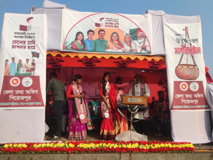পিরোজপুরে ভোট সচেতনতায় ভ্রাম্যমাণ সঙ্গীতানুষ্ঠান