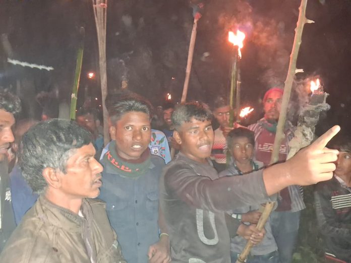 অন্যদিকে স্থানীয়রা অভিযোগ করেন, পানি উন্নয়ন বোর্ডের কিছু ব্যক্তি বিভিন্নভাবে এলাকাবাসীকে ভয়ভীতি দেখাচ্ছেন। তাদের দাবি— “এখানে কয়েক হাজার মানুষ উদ্বিগ্ন, প্রশাসনের কেউ কথা শোনে না। তাই বাধ্য হয়ে আমরা মশাল হাতে আন্দোলনে নেমেছি।”