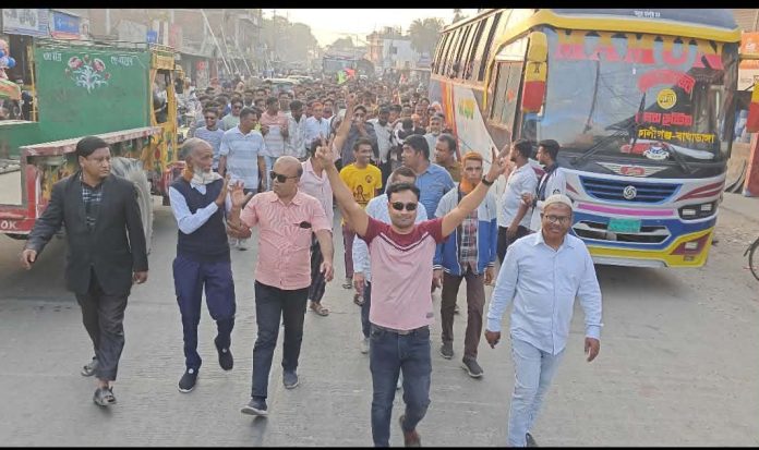 মিছিলে অংশ নেন ইউনিয়ন বিএনপির সাবেক সাধারণ সম্পাদক রবিউল ইসলাম রবি, উপজেলা জিয়া মঞ্চের সভাপতি আকাশ এবং যুবদল নেতা তুহিন।