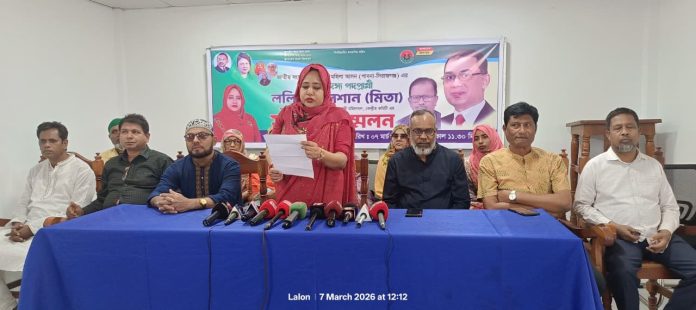 বাংলাদেশ জাতীয়তাবাদী মহিলা দলের কেন্দ্রীয় কমিটির সহ-দপ্তর সম্পাদক ললিতা গুলশান মিতা রবিবার ঈশ্বরদী প্রেসক্লাব মিলনায়তনে সংবাদ সম্মেলনের মাধ্যমে পাবনা–সিরাজগঞ্জ সংরক্ষিত মহিলা আসনে জাতীয় সংসদ সদস্য পদে প্রার্থিতা ঘোষণা করেছেন।