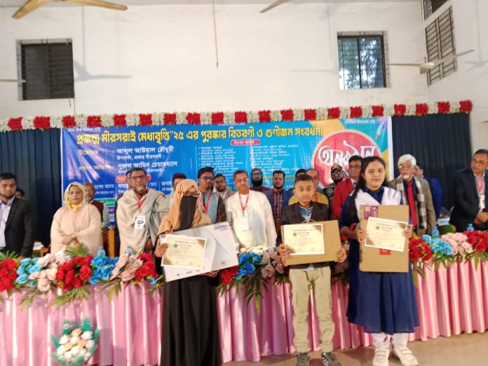 চট্টগ্রামের মিরসরাইয়ে সামাজিক শিক্ষাসেবামূলক সংগঠন ‘প্রজন্ম মিরসরাই’-এর উদ্যোগে আয়োজিত ‘প্রজন্ম মিরসরাই মেধাবৃত্তি ২৫’ অনুষ্ঠানের পুরস্কার বিতরণী ও গুণীজন সংবর্ধনা উৎসবমুখর পরিবেশে অনুষ্ঠিত হয়েছে।