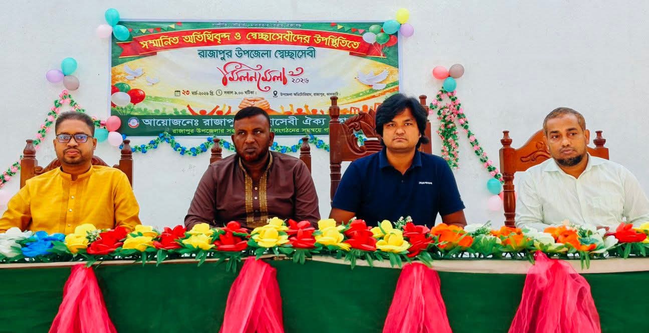 সম্প্রীতি, সৌহার্দ্য ও মানবতার সেবায় ঐক্যবদ্ধ হওয়ার প্রত্যয়ে ঝালকাঠির রাজাপুরে অনুষ্ঠিত হয়েছে স্বেচ্ছাসেবীদের মিলনমেলা ২০২৬।